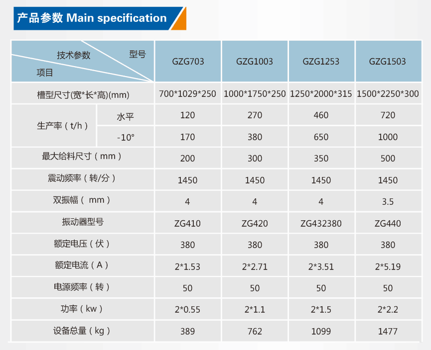 上海恒源生產的GZG系列自同步慣性振動給料機用以把塊狀、顆粒狀及粉狀物料從貯料倉或漏斗中均勻連續或定量地給到受料裝置中去。例如向破碎、選煤、篩分、運輸、包裝機械等給料、配料等。