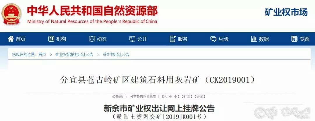 據了解,近期,江西分宜蒼古嶺礦區建筑石料用灰巖礦年產500萬噸砂石礦權出讓,砂石礦權年限達50年!