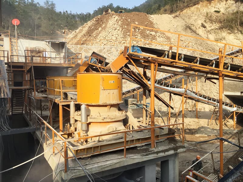 When the single cylinder cone crusher works, the motor drives the pinion of the crusher, the pinion drives the big gear, the big gear assembly (big gear, big gear frame, eccentric steel sleeve) drives the eccentric sleeve assembly (eccentric cylinder sleeve, eccentric copper sleeve) and the spindle assembly (spindle, inner cone, inner cone lining plate) take the theoretical vertical line as the center, rotate in the copper bush, and the spindle assembly takes the eccentric copper sleeve as the center. The center line of the spindle can rotate. When the airplane is running, the eccentric sleeve assembly "holds" the spindle assembly and rotates with the big gear. When the material is added to the crushing chamber, the spindle assembly (spindle, inner cone) rotates slowly in the eccentric copper sleeve under the resistance of the material. The trajectory of the inner cone seems to oscillate back and forth in the crushing chamber, while slowly rotating. The material is crushed by the swinging inner cone. When metal blocks and other non-fragile objects fall into the crusher, the dynamic cone of the single cylinder is supported by the bottom hydraulic piston, which plays the role of adjusting the discharge outlet and protecting the iron passage, repeatedly lifting and removing blockage.